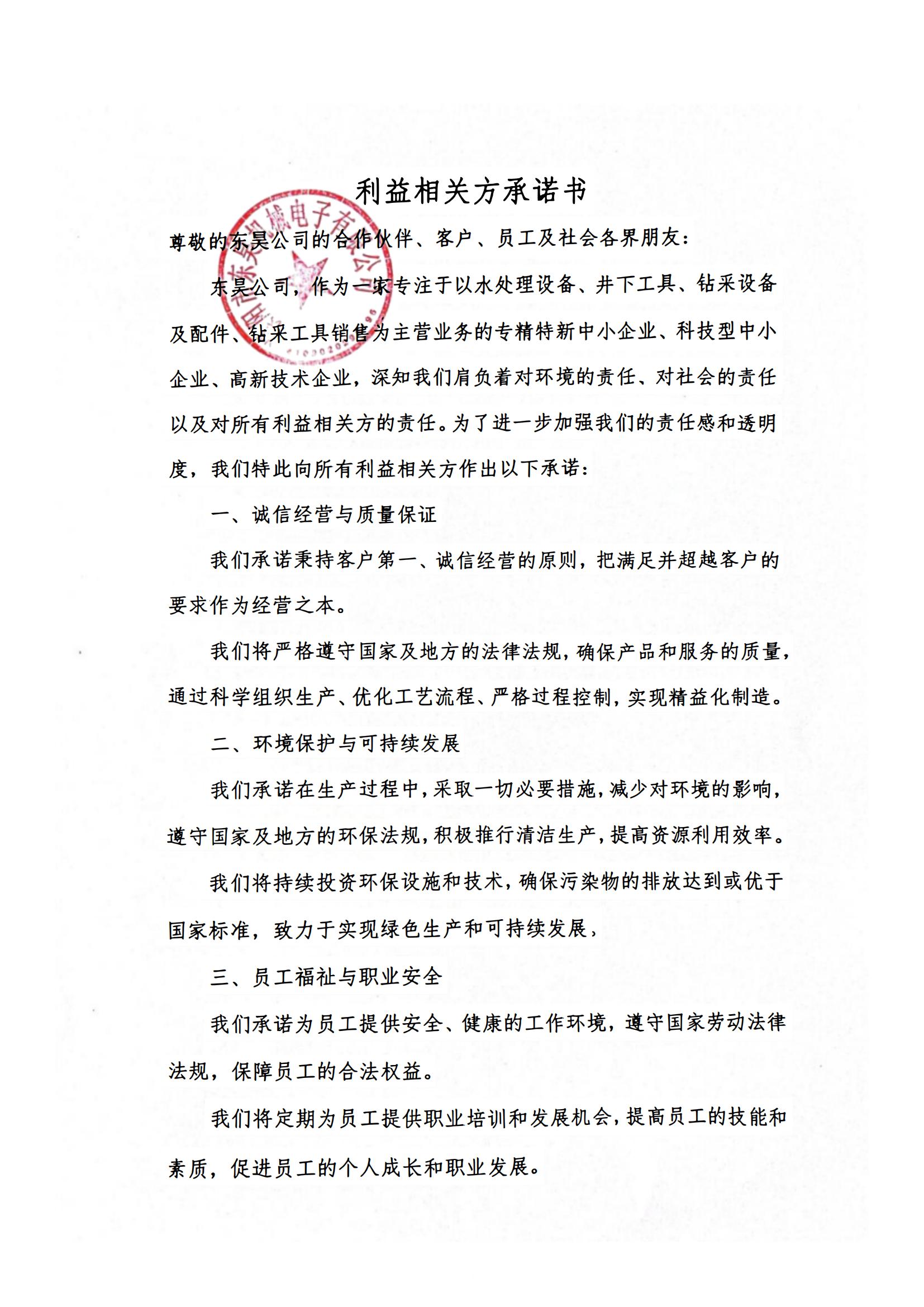 利益相關(guān)方承諾書
